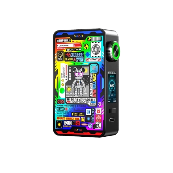 Lost Vape Centaurus M200 - box zasilany dwoma akumulatorami 18650 (brak w zestawie), moc wyjściowa regulowana w zakresie 5-200 W. Wyposażony w kolorowy wyświetlacz OLED o przekątnej 0,96 cala, posiada możliwość ładowania przez USB-C. Kontrolowany w łatwy sposób przy użyciu jednego przycisku, z dodatkowym przełącznikiem do szybkiego włączania i wyłączania moda. Elektronika oparta o zaawansowany chipset Quest 2.0. Lekka, wykonana z aluminium konstrukcja (sam mod waży zaledwie 150g).